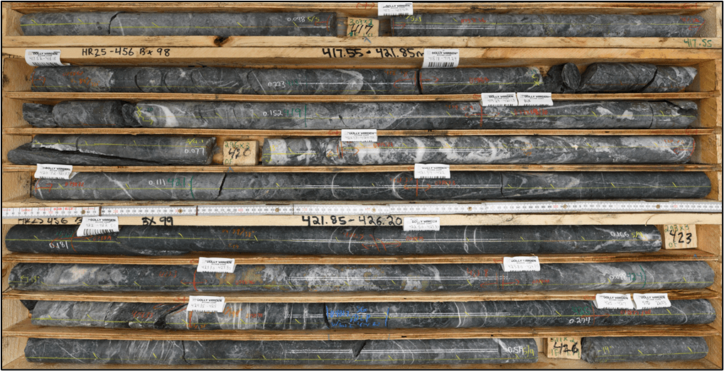 HR25-456: 3.34 g/t Au over 120 meters, including 216 g/t Au over 0.52 meters and