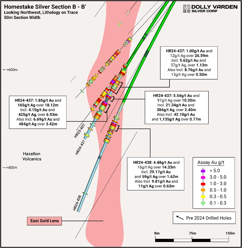 “Homestake Silver was originally considered a primary silver-rich deposit, however our drilling has continued to identify multiple gold-rich zones and remains wide open for expansion. Fully funded drilling in 2025 will target continued growth and further infill-drilling as a high-priority amongst the many targets in the Kitsault Valley trend,” said Shawn Khunkhun, CEO of Dolly Varden Silver.